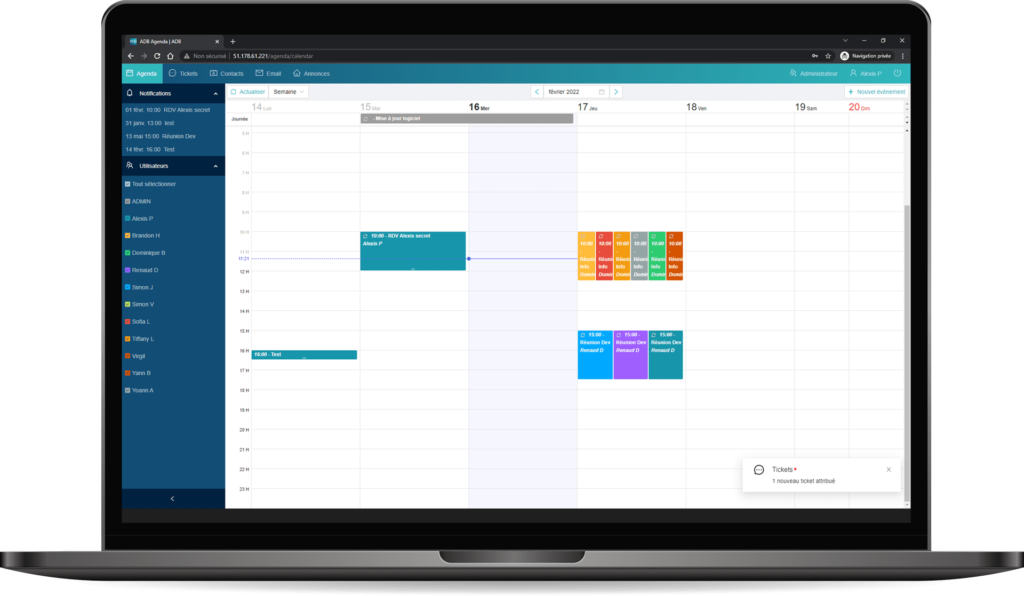 L’application Agenda contient une planification d’évènements, une gestion de tickets, un carnet de contact et un outil de mailing conçu pour les agences immobilières.